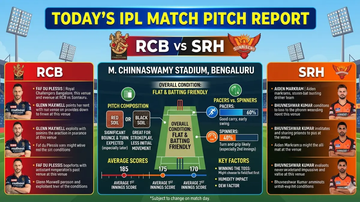 👉 यही वजह है कि today ipl match pitch report rcb vs srh में यह पिच सबसे बड़ा factor बनती है।